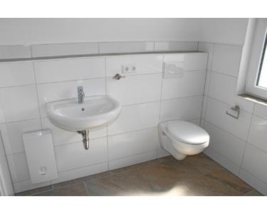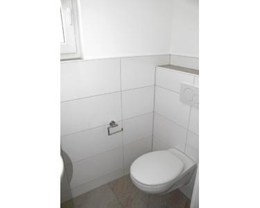Hochwertige Fliesen in Bädern, Gäste-WC, professionelle Sanitärobjekte, barrierefreie Nutzung.