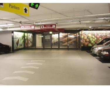 Eine Gebäudeeigene zweigeschossige, öffentliche Tiefgarage mit direktem Zugang ins Gebäudeinnere steht den Mietern und Besuchern kostenpflichtig zur Verfügung.