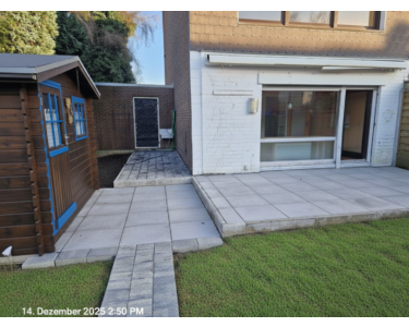 - Der Eingangsbereich wurde neu gestaltet und mit modernen Pflastersteinen verlegt