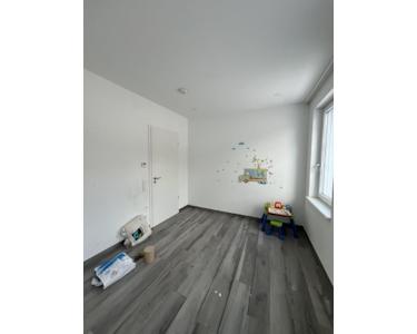 Vom Flur aus sind das Schlafzimmer sowie das Kinderzimmer bequem erreichbar. Darüber hinaus stehen ein innenliegendes Badezimmer mit Oberlicht, Dusche, WC und Waschmaschinenanschluss sowie eine separate Gästetoilette zur Verfügung.