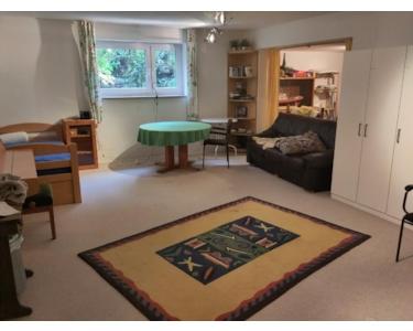 Das Untergeschoss bietet einen ca. 40 m² großen, beheizbaren Gästeraum mit Tageslicht, einen Werkraum, einen Wasch- und Heizungsraum sowie weitere Abstellflächen. Die geflieste, innenliegende Garage ist mit einem elektrischen Tor und Starkstromanschluss ausgestattet. Der Dachboden ist trocken, gedämmt, und kann als Lagerfläche genutzt werden.