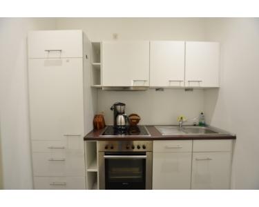 Das möblierte Apartment liegt in einer ruhigen Seitenstraße mit wenig Verkehr.