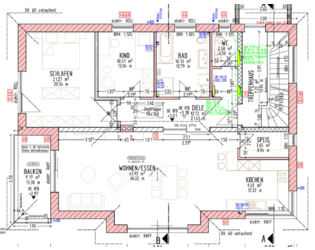 Zimmer: 3 -> 2 Schlafzimmer, ein großer Wohn- und Essbereich mit Küche und Speis