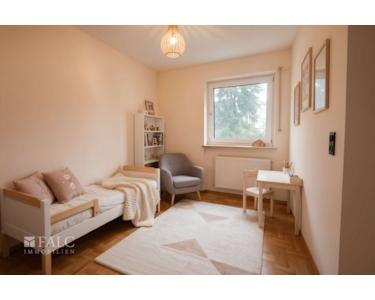 Die Wohnung im 1.OG verfügt über drei Schlafzimmer, die flexibel als Kinder-, Arbeits- oder Gästezimmer genutzt werden können. Das große und helle Wohnzimmer bildet den Mittelpunkt der Wohnung und bietet ausreichend Platz für gemeinsame Familienzeit.