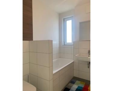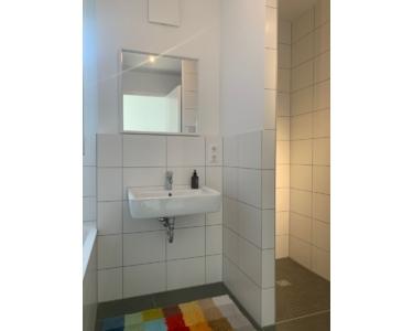 In der Mitte der Diele gelangt man links in das moderne Bad mit Tageslichtfenster, Wanne und Dusche.