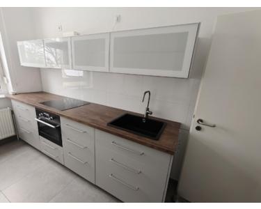 Die im Jahr 2021 installierte IKEA-Einbauküche ist mit einem Induktionskochfeld, einem Backofen mit Mikrowellenfunktion sowie einem Kühlschrank ausgestattet. Darüber hinaus können die auf den Fotos ersichtlichen Sitzmöbel, eine Garderobe sowie eine Waschmaschine mit 6 kg Fassungsvermögen übernommen werden. Der Vormieter stellt sich für das Gesamtpaket einen Abschlagsbetrag in Höhe von 3.000 € vor.