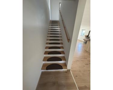 Die Treppenstufen sind in Buche Massivholz