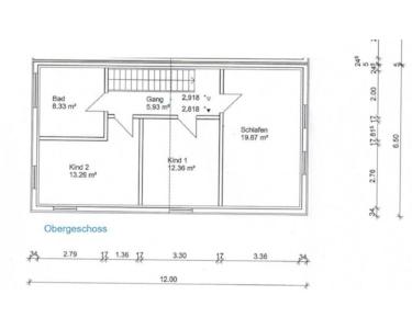 Das OG bietet neben dem geräumigen Schlafzimmer noch zwei weitere helle Räume, die als Kinderzimmer oder Büro genutzt werden können. In allen Räumen ist Telefon- sowie Antennenanschluss vorhanden.