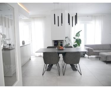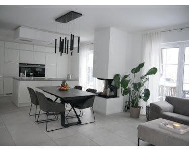 3 Seiten Panoramakamin, hochwertige und top ausgestattete Küche mit großer Kücheninsel, extra hohe Decken im Erdgeschoss, Fußbodenheizung im ganzen Haus, umfangreiches Smarthome System, Solaranlage mit 18kW Speicher und Wallbox, elektrische Rollläden, elegante Holztreppe und vieles mehr.