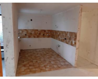 Alle Fußböden sind geschliffen, bis auf die Bereiche welche mit Fließen belegt sind. Tapeten sind in mehreren (nicht allen) Räumen entfernt, Malerarbeiten wie Ungleichheiten spachteln und streichen erforderlich.