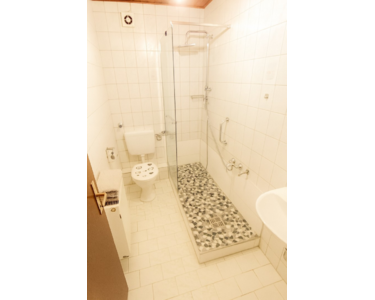- Badezimmer mit großer Dusche, zeitlos gefliest