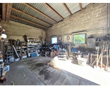 - Schuppen/Garage für landwirtschaftliche Maschinen mit Grube (15 × 8 Meter)