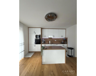 Die Ausstattung ist hochwertig und durchdacht: Eine luxuriöse Einbauküche mit Kochinsel (Anschaffungswert 30.000,- Euro), edle Eichenparkettböden, ein modernes Bad mit großformatigen Marmorfliesen, bodengleicher Regendusche, Fußbodenheizung und Handtuchheizkörper. Waschmaschine und Trockner sind integriert.