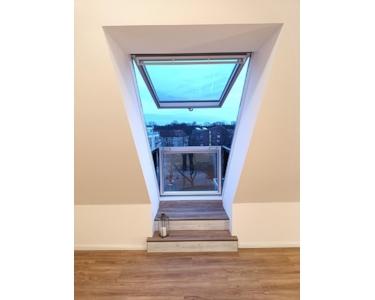 In dem 1960 gebauten Mehrfamilienhaus wurde diese Wohnung 2023/24 völlig neu ins Dachgeschoß gebaut, und in diesem Zug wurde das ganze Haus mit neuen Fenstern und Fassadendämmung energetisch auf den neuesten Stand gebracht.