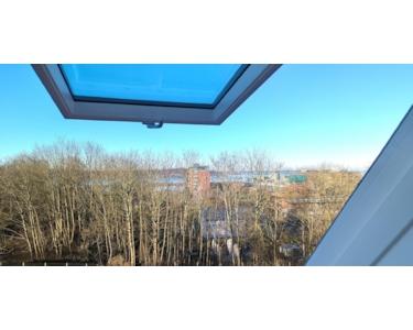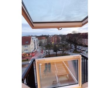 Herz öffnen. Durch das Panoramafenster des lichtdurchfluteten Wohnzimmers schauen Sie vom Tilsiter Platz bis in die ländliche Probstei im Nordosten von Kiel. Das reicht Ihnen noch nicht? Dann folgen Sie uns über die 14 Holzstufen der Innentreppe dieser Maisonette-Wohnung nach oben in den Schlafbereich und schauen durch das seeseitige Dachfenster den weißen Fähren und Kreuzfahrtschiffen beim Auslaufen aus der Kieler Förde zu. Oder Sie wechseln die Seite, klappen den Dachbalkon heraus, genießen den atemberaubenden Blick über Dächer, Bäume und Landschaften und lassen sich dabei den frischen Seewind um die Ohren wehen. Hören Sie das Kreischen der Möwen? Dann sind Sie in einer der spektakulärsten Neubauwohnungen von Kiel angekommen.