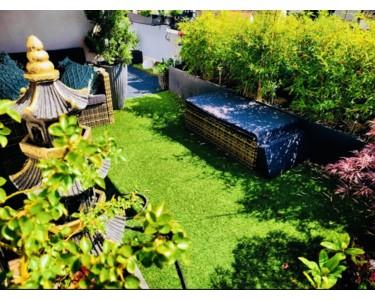 Der Freisitz mit offenen Kamin bietet für kältere Tage ein lauschiges Plätzchen. Es befinden sich zwei Abstellräume, ein Wasseranschluss für die Pflanzbewässerung, und eine statische Beurteilung für einen kleinen Jacuzzi wäre vorhanden.