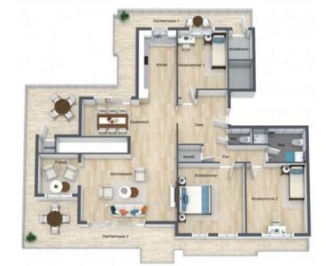 Bei diesem Angebot handelt es sich um eine 4- Zimmer Penthousewohnung mit umlaufender Dachterrasse, Freisitz mit offenen Kamin.