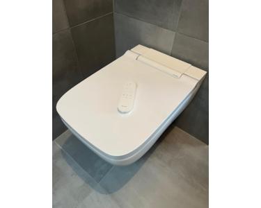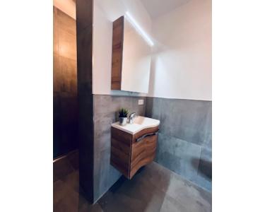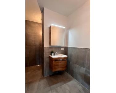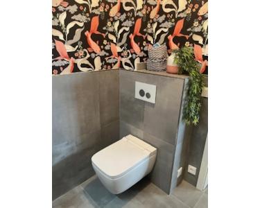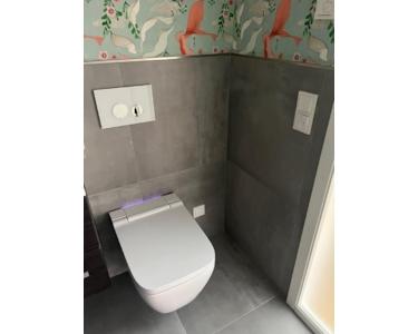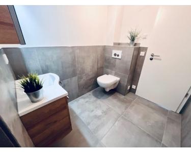 Gäste-WC mit integrierter WC-Dusche sowie einer bodenebenen Dusche