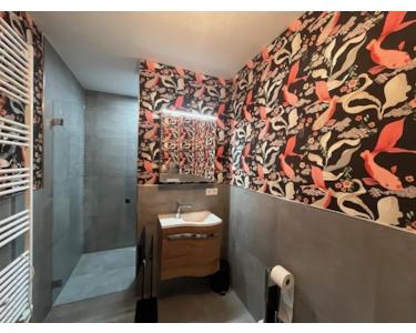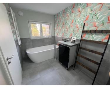 Elternduschbad mit Badewanne und einem weiteren WC mit integrierter WC-Dusche