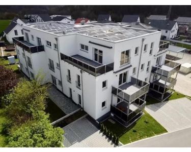 Auf dem sonnigen Grundstück wurde dieses mehrgeschossige Wohngebäude in ökologischer Holzbauweise als Effizienzhaus-40-PLUS errichtet. Die nachhaltige und wirtschaftliche Wärmepumpentechnologie sorgt für die primäre Energieversorgung des Gebäudes (Heizung und Warmwasser). Das Besondere daran ist, dass die am Dach aufgeständerte PV-Anlage mit einer Leistung von knapp 30 kW maßgeblich zur Energieunterstützung beiträgt. Hohe Heiz- und Nebenkosten müssen die Bewohner dieser Immobilie zukünftig nicht fürchten. Als Speichermedium für den gewonnenen Sonnenstrom wurde zusätzlich ein 12 kW-Energiespeicher installiert. Der nicht genutzte PV-Strom wird ins öffentliche Stromnetz eingespeist und durch den Energieversorger rückvergütet.