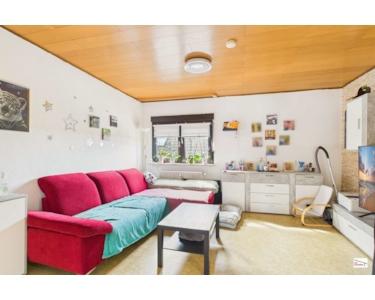 Das Obergeschoss ist seit 2013 vermietet. Die Wohnung mit ca. 55 m² Wohnfläche bietet ein Schlafzimmer, ein Wohnzimmer, eine Wohnküche mit Zugang auf den überdachten Balkon sowie ein kleines Tageslichtbad. Die monatliche Kaltmiete liegt aktuell bei 390 Euro.