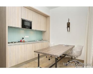 Dieses außergewöhnliche Apartment bietet mediterranes Flair dank der palmenbepflanzten Terrasse im Innenhof. Ein Glas Wein im Freien während der warmen Jahreszeit bietet Ihnen Entspannung nach Ihrer Projektarbeit. Dank der großen Glasfront ist das Apartment besonders hell und freundlich. Der offene Schnitt, der einen Blick vom Wohnbereich in den Schlafbereich erlaubt, bietet Ihnen viel Raum zum Wohnen. Das separierte, geräumige Bad ist mit einer ebenerdigen Dusche ausgestattet. Die gesamten Bodenflächen und das Bad sind mit exklusiven Natursteinfliesen versehen, ideal für Allergiker. Die hochwertige Einbauküche ist mit Spülmaschine, Kühlschrank, Mikrowelle mit Grillfunktion und einer Koch Zone mit 4 Kochplatten ausgestattet. Selbstverständlich finden Sie auch eine Grundausstattung an Geschirr und Kochutensilien vor. Der begehbare Kleiderschrank bietet viel Platz für Ihre persönlichen Dinge und verfügt auch über ein Schließfach. Die Miete beträgt 1550 € inklusive aller Nebenkosten, Energie und der Nutzung des Internetzugang. Wenn verfügbar kann ein Tiefgaragenstellplatz im Haus für monatlich 100 € angemietet werden. Wenn gewünscht ist auch ein regelmäßiger Reinigungsservice möglich, die Berechnung erfolgt nach Aufwand. Waschmaschine und ein Trockner stehen Ihnen zur Mitbenutzung im Keller zur Verfügung. Die Endreinigung obliegt dem Vermieter, erfolgt nach Aufwand und wird mit 35 € pro Stunde abgerechnet.