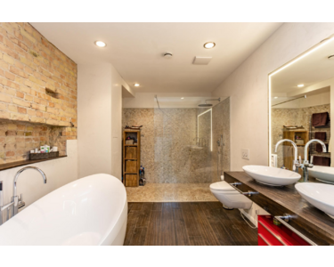• sichtbare Ziegelwände, hohe Decken, außergewöhnliche Architektur