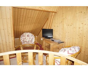 Über die Wendeltreppe ist das urige Dachgeschoss mit kompletter Holzverkleidung zu erreichen. Hier steht Ihnen der Schlafbereich und eine weitere Sitzecke mit TV-Anschluss zur Verfügung.
