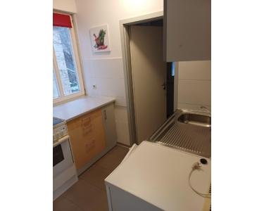 Die Wohnung wurde frisch gestrichen. Die Einbauküche ist vollständig ausgestattet und umfasst einen Kühlschrank mit Gefrierfach sowie einen Herd mit integriertem Backofen.