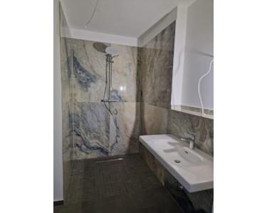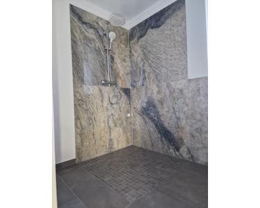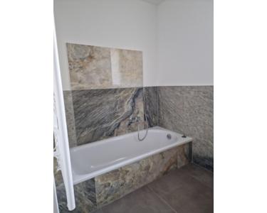 Geradeaus betreten Sie das moderne Badezimmer, das mit einer großzügigen, bodengleichen 2xDusche (1,20 m x 1,20 m) und Badewanne ausgestattet ist – perfekt für ein entspanntes Duscherlebnis. Die Waschmaschine findet ihren Platz in einem kleinen Hauswirtschaftsraum, sodass Funktionalität und Komfort harmonisch vereint sind.