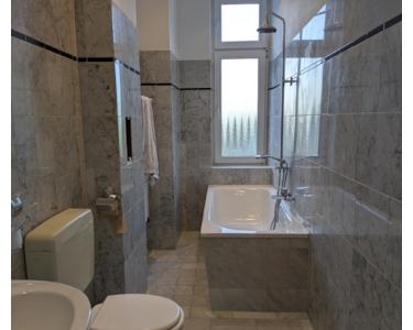 Bad mit Wanne und Marmorfliesen