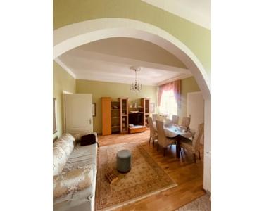 Ein besonderes Highlight ist das weitläufige Esszimmer, das direkt an die Küche angrenzt – ideal für gemeinsame Stunden mit Familie und Freunden. Die hohen Decken verleihen den Räumen ein offenes Wohngefühl und zusätzlichen Komfort.