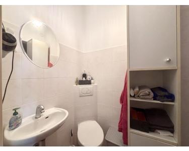Das geflieste Badezimmer ist modern gestaltet und mit einer bodentiefen Dusche ausgestattet. Eine attraktive Wohnung mit flexiblem Nutzungspotenzial in zentraler Lage.