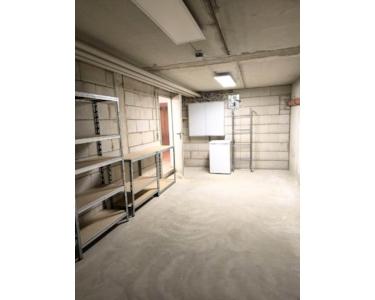 Es gibt drei große Kellerräume. In einem befindet sich die Gaszentralheizung mit Warmwasserversorgung. Dort sind neben den Anschlüssen der Wasser-, Strom- und Gasversorgung Platz und Anschlüsse für Waschmaschine und Trockner. Im Keller daneben befindet sich der Sicherungskasten mit digitalem Stromzähler, DSL-Kabel- und Telefonanschluss, Vorratsregale und Gefrierschrank.