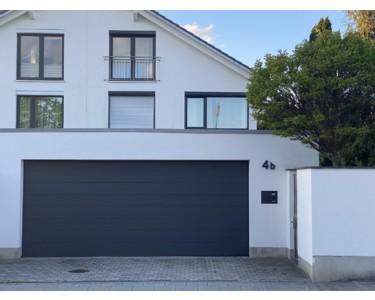 Eine sehr großzügig dimensionierte Doppelgarage bietet Platz für zwei Autos und alle Zweiräder einer Familie. Der nach Süden