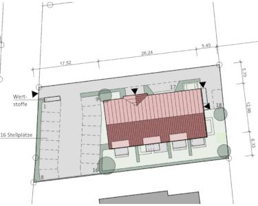 Der Bauantrag für das Gebäude auf Basis des Vorbescheids ist eingereicht und wird Gegenstand des Kaufobjektes.