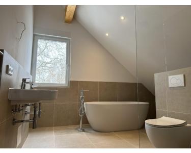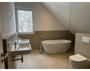 • Bad: Tageslichtbad mit freistehender Badewanne und separater Dusche. Hochwertige Sanitärobjekte.
