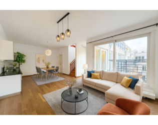 Dieses außergewöhnliche Maisonette-Penthouse krönt ein liebevoll restauriertes historisches Gebäude und vereint den Charme klassischer Architektur mit dem Komfort moderner Renovierungen. Auf den oberen Etagen gelegen, empfängt Sie die Hauptebene der Wohnung mit einem großzügigen, lichtdurchfluteten Wohnbereich und einer beeindruckenden offenen Küche – ideal für entspanntes Wohnen im Alltag oder stilvolles Unterhalten. Zwei gemütliche Schlafzimmer bieten Flexibilität für Familien, Gäste oder ein separates Arbeitszimmer. Das Hauptschlafzimmer verfügt über ein eigenes en-suite Badezimmer, während ein separates Gäste-Badezimmer zusätzlichen Komfort bietet. Bodentiefe Türen öffnen sich zu einer großen privaten Terrasse, die den Wohnbereich nach außen erweitert.