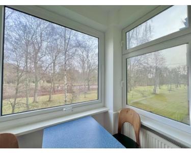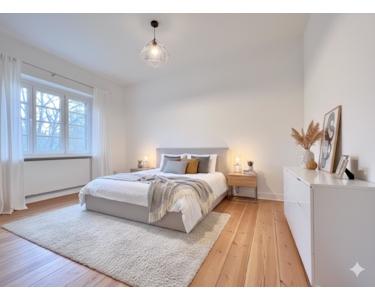 Es handelt sich hier teilweise um maßstabsgetreue Fotos, welche mit KI bearbeitet wurden. So oder so ähnlich könnte der Raum mit neuer Einrichtung aussehen. Die aktuellen Möbel können optional übernommen werden.