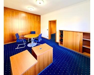 In den Räumen sorgt ein hochwertiger textiler Bodenbelag für eine angenehme Akustik und ein repräsentatives Erscheinungsbild, während die neue LED-Beleuchtung eine gleichmäßige, energieeffiziente Ausleuchtung sicherstellt.