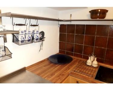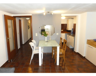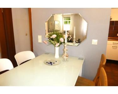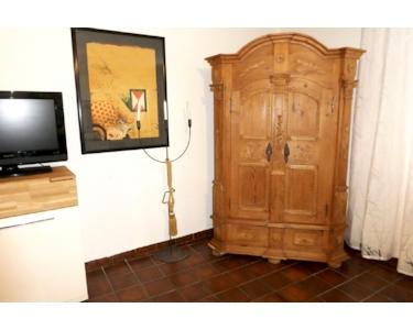 Esstisch mit 4 Stühlen, großem Sofa (zum Ausziehen), Couchtisch, modernem Sideboard und schönem alten Bauernschrank, TV, Kabelanschluss
