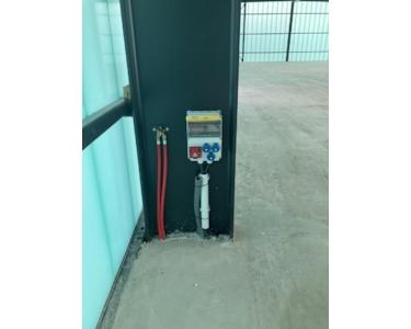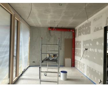 Die Flächenheizung ist so ausgelegt, dass sie im Winter zum Heizen genutzt werden kann wie auch im Sommer um die Räumlichkeiten herunter zu kühlen, das gilt auch für die gesamte Produktionsfläche. Fußbodenheizung im gesamten Gebäude. Die Büro und Sozialräume sind noch zusätzlich mit einer Deckenheizung bzw Kühlung ausgestattet.