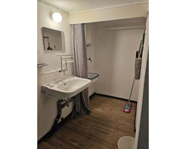 Es ist eine neuwertige Einbauküche vorhanden. Es gibt KEINE Dusche.