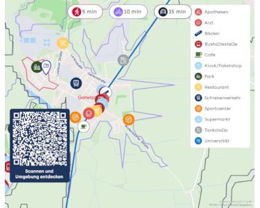 Einkaufsmöglichkeiten, Arztpraxen, Cafés sowie Bus- und Bahnanschlüsse sind in wenigen Minuten erreichbar – ideal für den täglichen Bedarf ohne lange Wege.