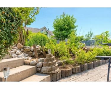 Der großzügige Garten bietet reichlich Platz für Freizeit, Spiel und Erholung. Zwei Terrassen – eine davon überdacht und mit Kamin – schaffen eine einladende Verbindung zwischen Innen- und Außenbereich.