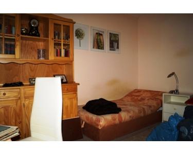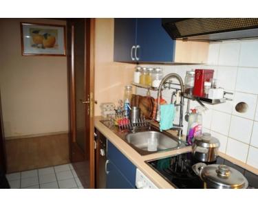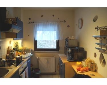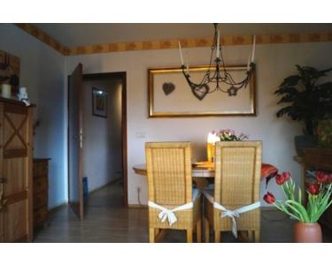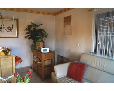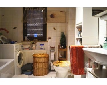 Die Fußbodengestaltung wechselt zwischen Laminat im Wohnbereich sowie Fliesenbelag im Küchen- und Sanitärbereich.