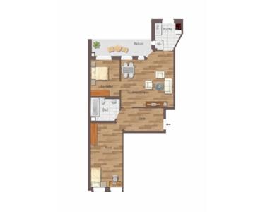Die Wohnung verfügt über drei gut proportionierte Zimmer, darunter ein ruhiges Schlafzimmer sowie ein weiteres Zimmer, das sich flexibel als Kinder-, Gäste- oder Arbeitszimmer nutzen lässt. Der helle Wohn- und Essbereich bildet das Herzstück der Wohnung und öffnet sich zum großen Ost-Balkon, der direkt vom Wohnbereich aus zugänglich ist. Hier genießen die Bewohner die Morgensonne und den Blick in den grünen, weitläufigen Innenhof, der dem Objekt eine besondere Ruhe und Wohnqualität verleiht.