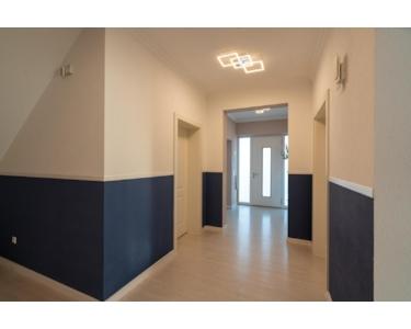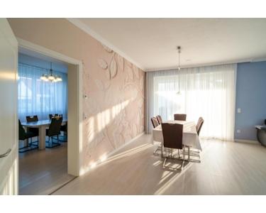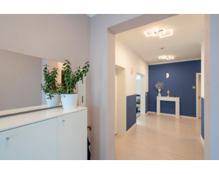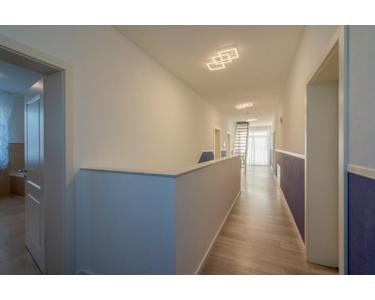Es bietet auch Platz für 2 Generationen, mit sehr großzügigen Räumen bei ca. 315 m² Wohnfläche und einer Deckenhöhe von ca. 2,87 Meter. Dazu kommen noch ca. 100 m² im Dachgeschoss, das bereits mit hochwertigem Laminatfußboden und Heizkörpern, zum Ausbau von 2 oder 3 Räumen vorbereitet ist.
