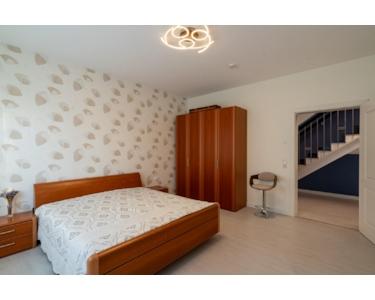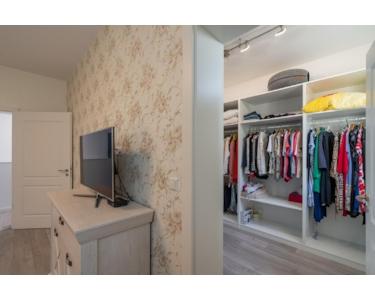Flur, Kinderzimmer 1, Kinderzimmer 2 mit Zugang zu einem Balkon, Elternschlafzimmer mit Ankleideraum und kleinerem Elternbad, ein sehr großes Badezimmer und ein zweites Wohnzimmer.