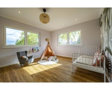 Die STREIF-Passiv-Haus-Wände, eine effiziente Heiztechnik mit integrierter Wohnraumlüftung und Wärmerückgewinnung garantieren einen geringen Energieverbrauch und ein fantastisches Raumklima, das insbesondere Allergiker aufatmen lässt.